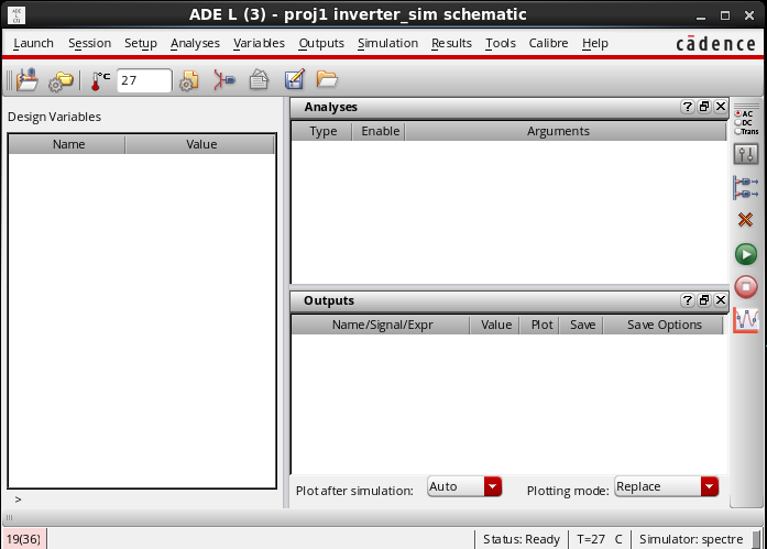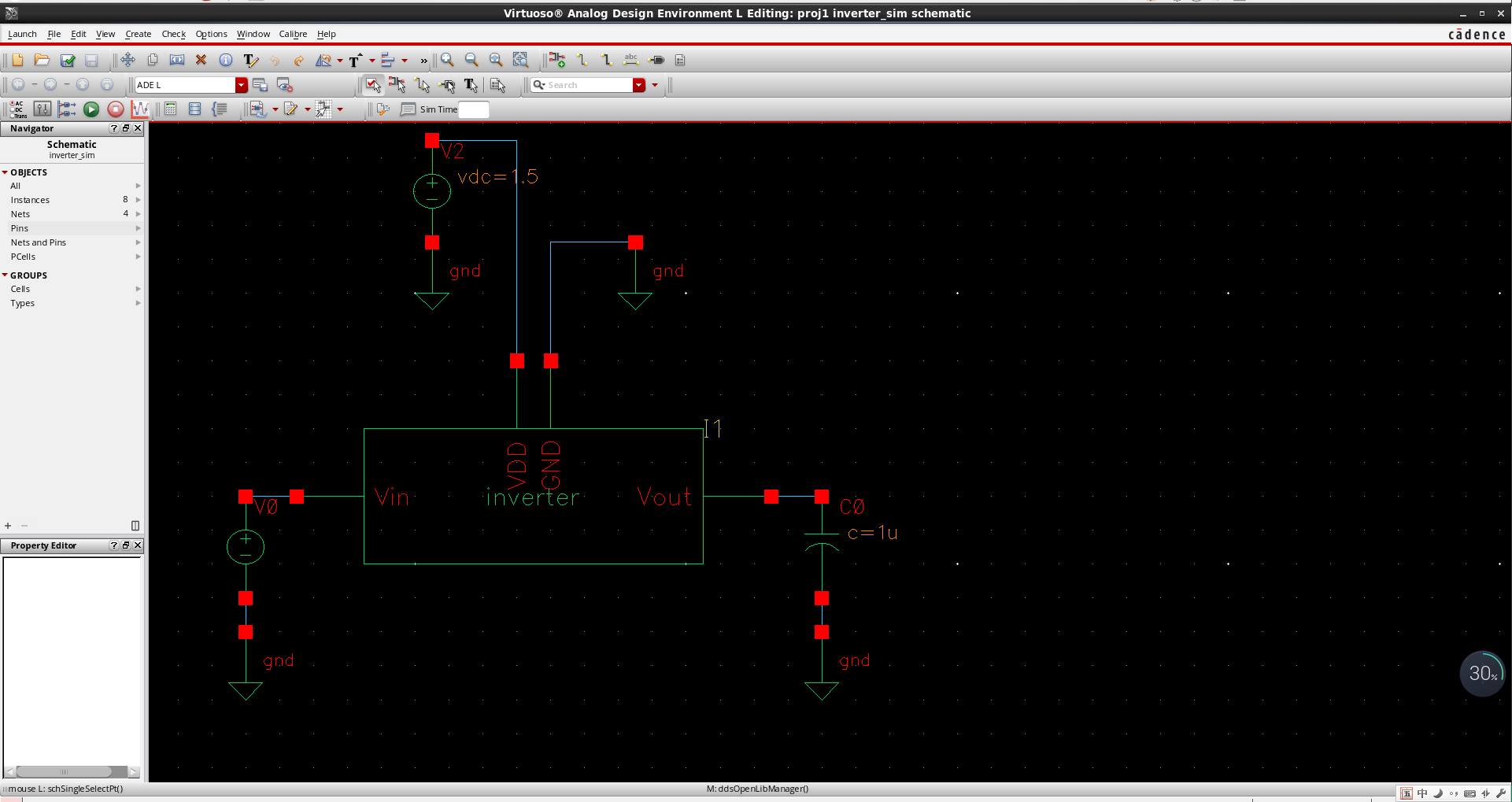 在我们的 inverter_sim 的原理图界面,Launch - ADE L。